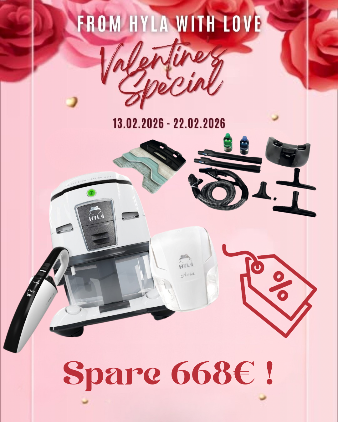 Du erhältst gratis zu deinem Hyla System:- Nimbus-Set 329€- Luxury Wischtücher 71€- Handelektrobürste 159€€- kostenloser Lifetime Support Deine Ersparnis : 559€